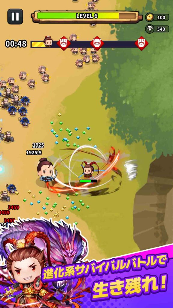 単純に敵を倒して進むだけではなく、どの武将を強化し、どの装備を選び、どのスキルを解放していくかといった育成と戦略の選択が、サバイバルの結果を大きく左右します。